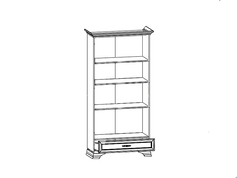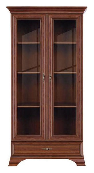 Шкаф Кентаки — укомплектован двумя распашными дверьми со стеклянными фасадами и одним выдвижным ящиком на металических роликовых направляющих. Двери и фасадная часть ящика имеют рамочно-филенчатую конструкцию с серебристой патиной, что придает изделию элегантный вид, а изящные латунные ручки удачно подчеркивают классический стиль мебели Кентаки. Опорные ножки шкафа выполнены из декоративной планки из МДФ.
