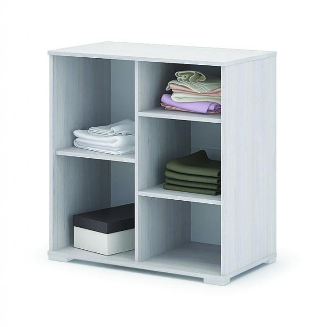 Комод состоит из пяти полок: две с одной стороны и три с другой.