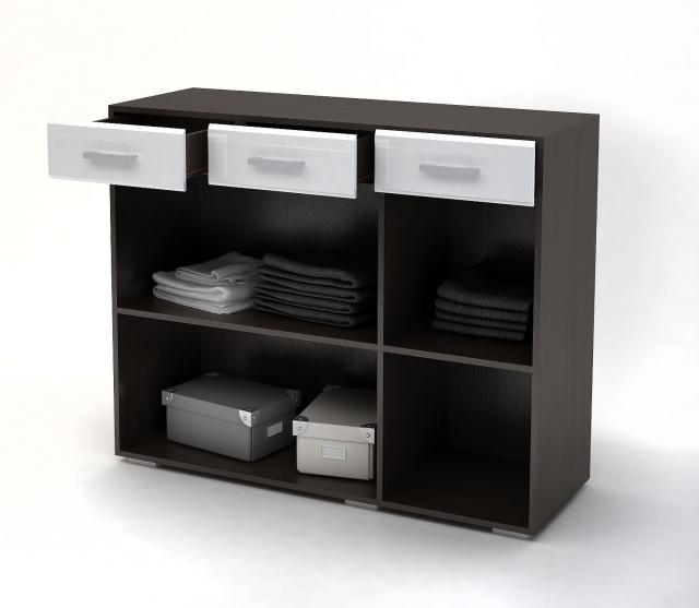 Комод Вегас с тремя вдвижными ящиками найдет свое применение в комплектации с другой мебелью из коллекции Вегас, а также может самостоятельно использоваться в прихожей, детской, гостиной или спальне.