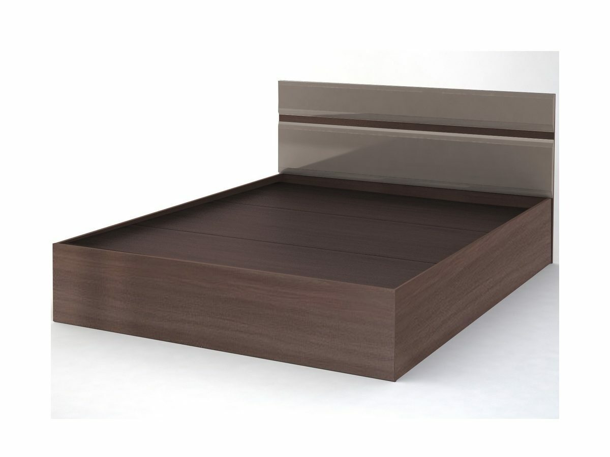 Кровать Вегас — просторная, двухместная, с высоким светлым глянцевым изголовьем, украшенным отделочной темной полосой.