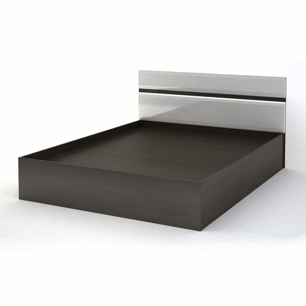Кровать Вегас — просторная, двухместная, с высоким светлым глянцевым изголовьем, украшенным отделочной темной полосой.