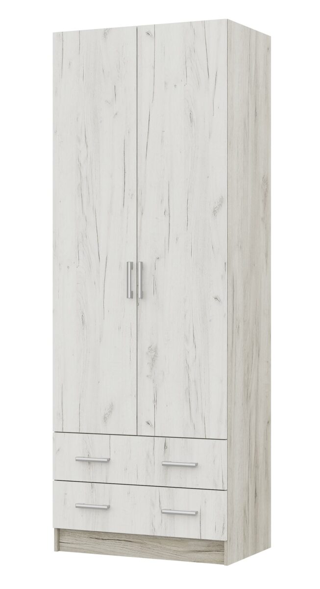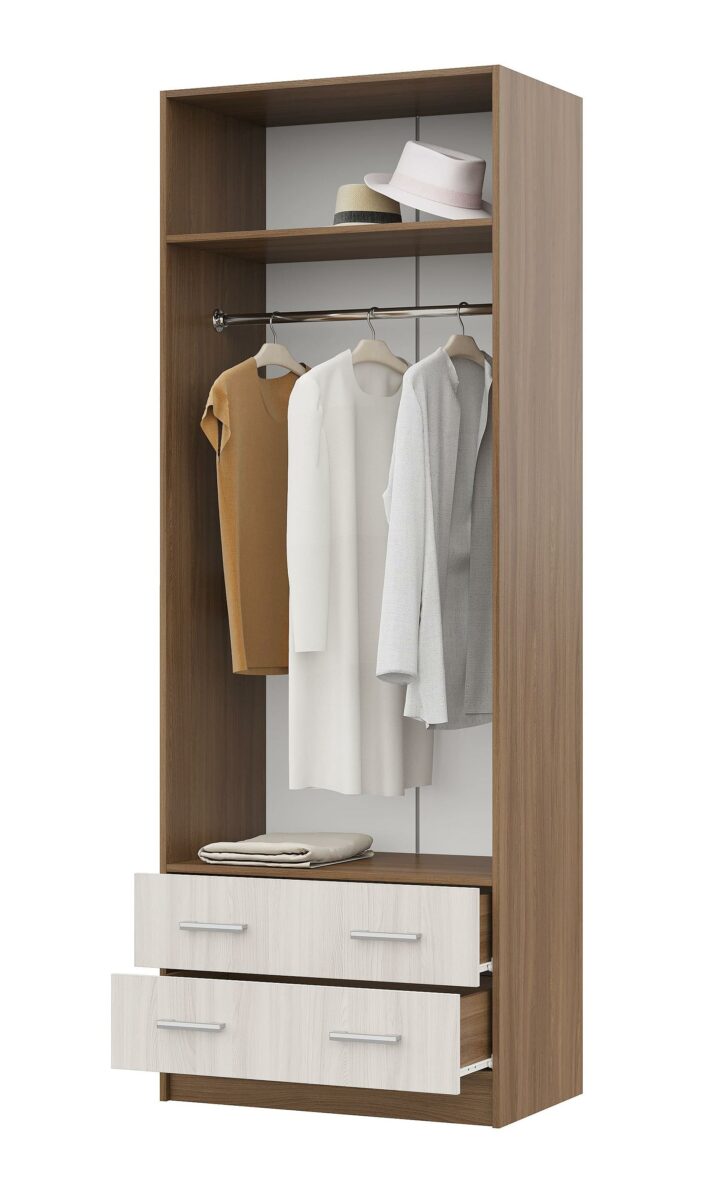 За двумя распашными дверьми находится штанга для вешалок-плечиков с верхней одеждой, деловыми костюмами, красивыми платьями и другой одеждой.
