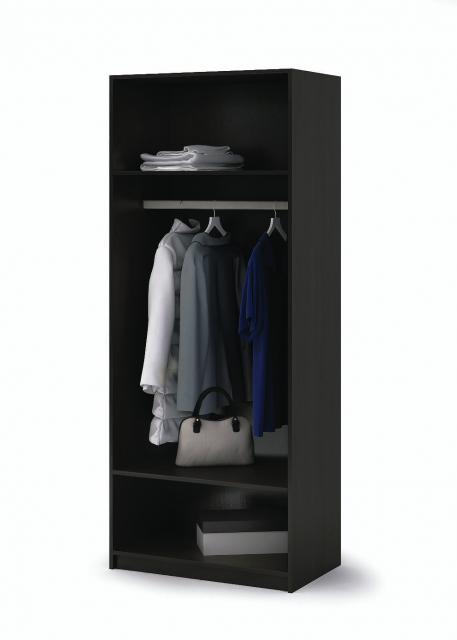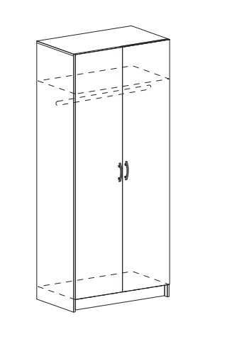 Шкаф Бася ШК 554 оснащен штангой для одежды на плечиках и полкой в верхней его части.