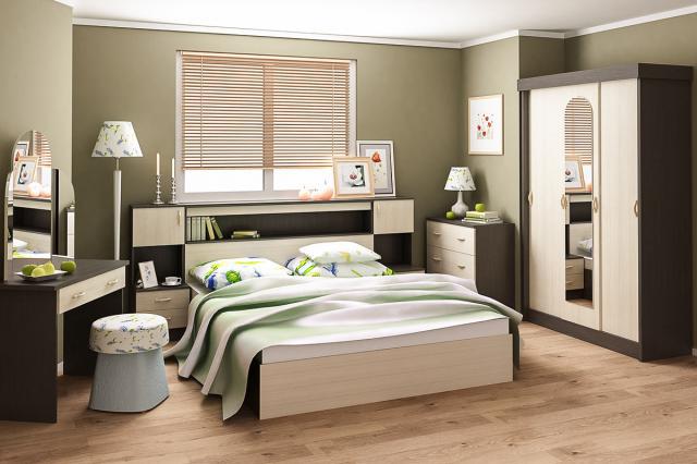 Очень лаконичная и спокойная модульная система для спальни Бася отлично подойдет для большой и не очень спальни. В комплект гарнитура Бася входит весь необходимый минимум мебели, который поможет создать уют и комфорт в вашей спальне.