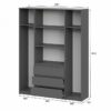 Компоненты, входящие в комплект: комод — 700х350х756 мм, кровать — 2052х1636х660 мм, шкаф платяной — 1601х462х2052 мм, 2 тумбочки прикроватных — 401х348х306 мм