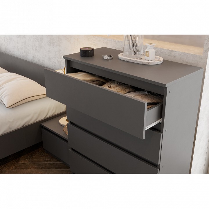 Спальный Денвер графит — это изысканное и стильное решение для обустройства вашей спальни. Цвет графит придает спальне строгий и изысканный вид. Он идеально подходит для создания современного интерьера. Основными элементами спальни Денвер графит являются кровать 120х200 см, две прикроватные тумбочки, шкаф и комод.