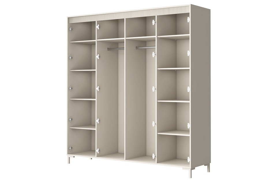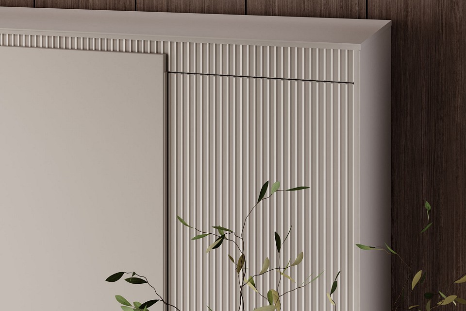 Дополнительные параметры: система Push to Open, направляющие шариковые скрытого монтажа с системой Push to Open, опоры пластиковые – цвет кашемир, петли с доводчиками, направляющие с доводчиками, дизайн без ручек, стильное сочетание цветов