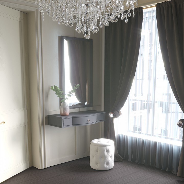 Подвесной туалетный стол Берже 15 станет украшением спальни, гостиной, прихожей, будуара в классическом стиле. Кроме выдвижного ящика, у модели есть два потайных. Благодаря этому все важные предметы будут под рукой в надёжном месте.