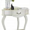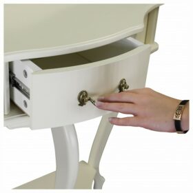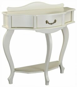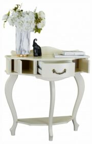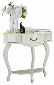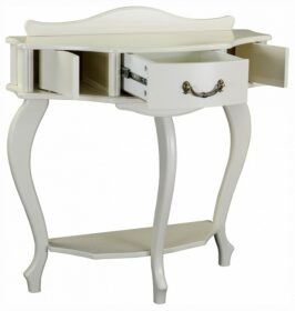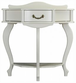 Функциональную консоль Джульетта можно использовать, как туалетный или письменный столик. Ее выгодно сочетать с зеркалом и банкеткой. Изысканный предмет мебели станет эффектным интерьерным акцентом любой домашней зоны. Вместительный выдвижной ящик будет надежным местом хранения для важных вещей. Поверхность консоли можно украсить интерьерным декором, букетом цветов.