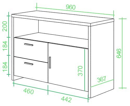 Компоненты, входящие в комплект: 1 дверца, 1 полка, 2 ящика