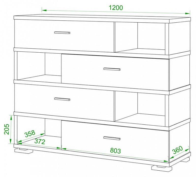 Компоненты, входящие в комплект: 4 полки, 4 ящика