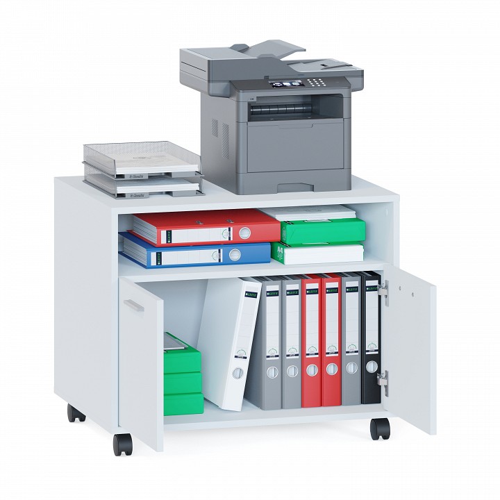 Тумба КТ-351 —вместительная современная тумба на колесах. Размеры (ВхШхГ): 634 х 743 х 560 мм. Идеальный вариант для меблировки рабочей зоны кабинета в офисе и дома. Тумба имеет две полки для хранения, одна из них открытая. Размер открытой полки 710 х 527 мм. Размер внутренней полки — 743 х 560 мм. Тумба оснащена поворотными колесами для удобного перемещения по комнате.