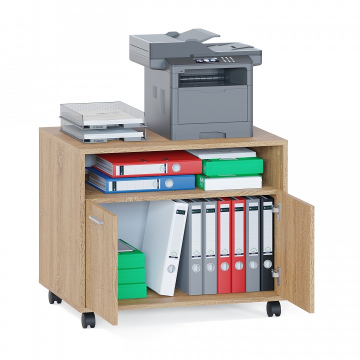 Тумба КТ-351 —вместительная современная тумба на колесах. Размеры (ВхШхГ): 634 х 743 х 560 мм. Идеальный вариант для меблировки рабочей зоны кабинета в офисе и дома. Тумба имеет две полки для хранения, одна из них открытая. Размер открытой полки 710 х 527 мм. Размер внутренней полки — 743 х 560 мм. Тумба оснащена поворотными колесами для удобного перемещения по комнате.