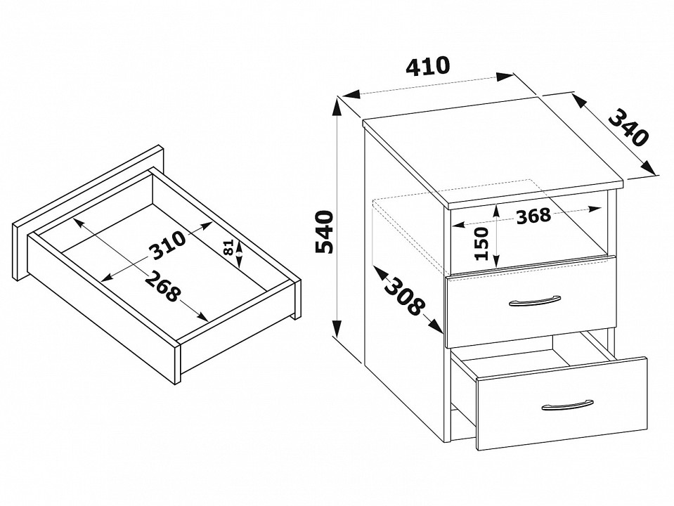 Дополнительные параметры: края отделаны кромкой ПВХ 0.4 мм задняя стенка сделана из ДВП белого цвета внутренние размеры ящика — 310 х 268 мм в ящиках используются роликовые направляющие