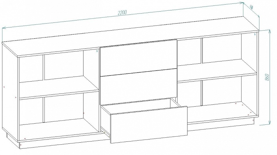 Компоненты, входящие в комплект: 2 полки, 3 ящика 4 дверцы