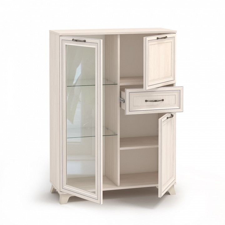 Компоненты, входящие в комплект: 1 ящик, 3 дверцы, 3 полки