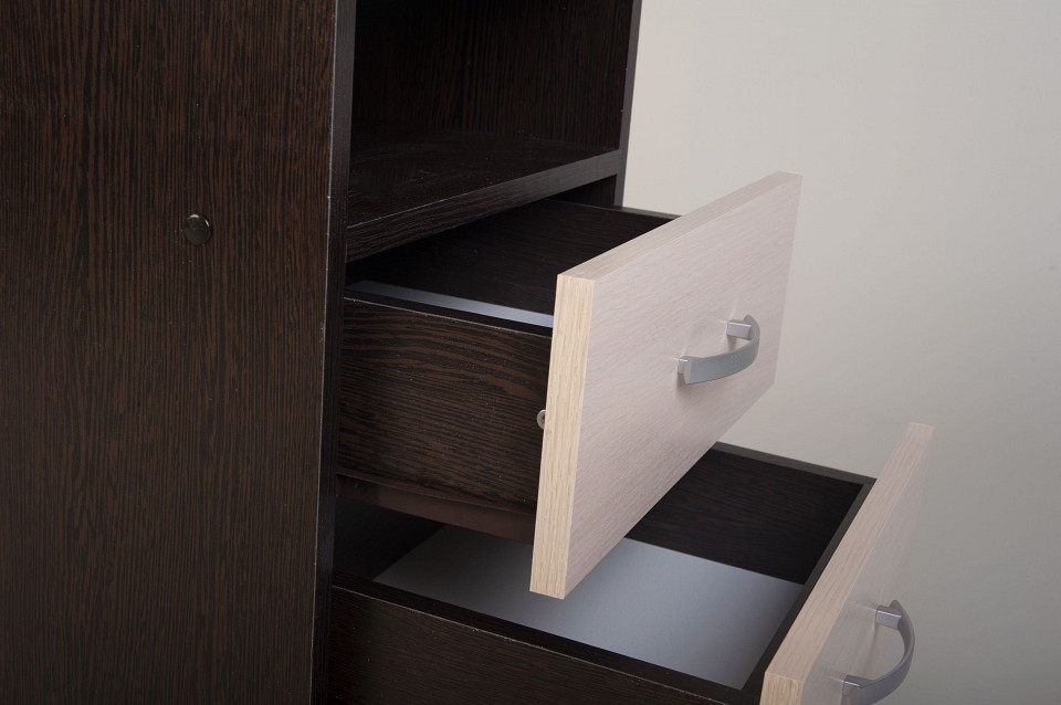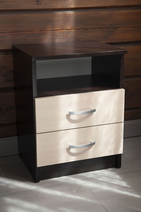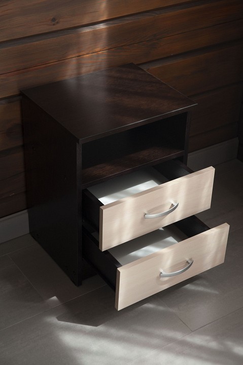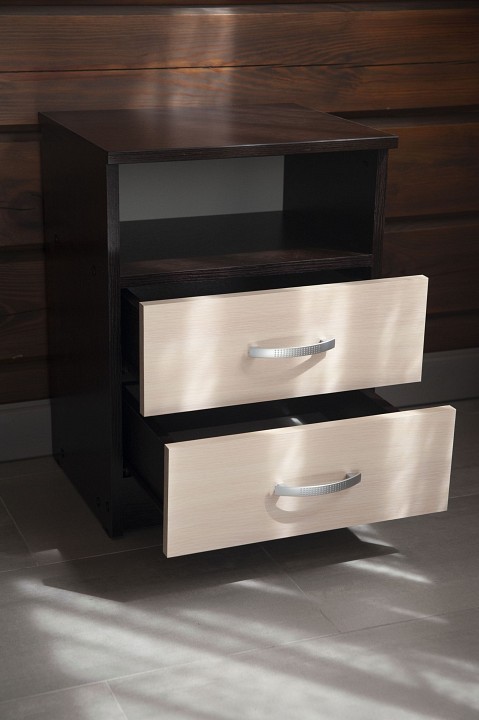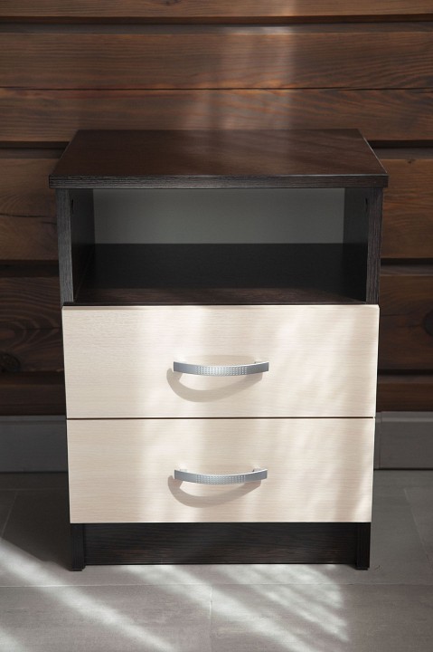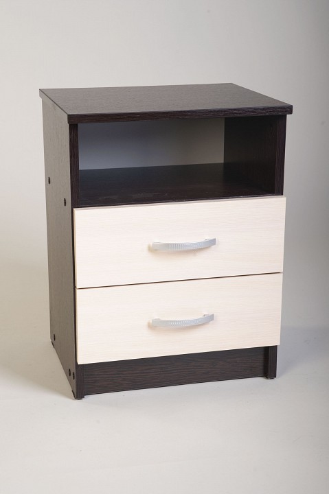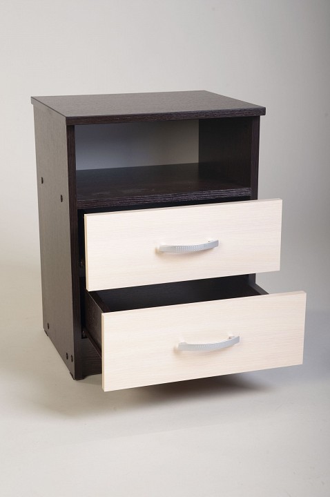 Небольшая универсальная тумочка имеет открытую нишу и два выдвижных ящика. Практичный элемент для хранения канцелярских принадлежностей и документов в офисе или дома. Также тумбочку можно использовать как прикроватную: на ней поместится небольшой ночник, а в ящиках и на полке будет удобно держать под рукой разные мелочи. Внутренние размеры ящика — 298х322 мм. Изделие выполняется из ЛДСП толщиной 16, края обработаны кромкой ПВХ 0,4 мм. В ящиках используются роликовые направляющие. Задняя стенка сделана из ДВП серого цвета. Рекомендуем сохранить инструкцию по сборке (паспорт изделия) до истечения гарантийного срока.