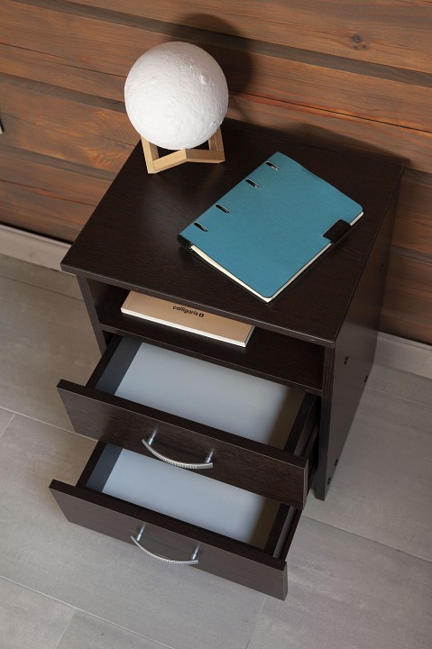Тумбочка КТ-09.1 — практичный элемент для хранения канцелярских принадлежностей и документов в офисе или дома. Также тумбочку можно использовать как прикроватную: на ней поместится небольшой ночник, а в ящиках и на полке будет удобно держать под рукой разные мелочи. Внутренние размеры ящика — 298×322 мм. Задняя стенка сделана из ДВП серого цвета.