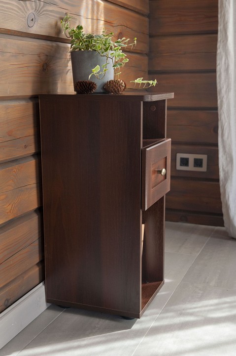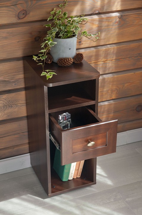 Тумбочка Шерлок 51 служит прекрасным дополнением к любой спальне. Всегда удобно, когда любимые гаджеты или книги находятся под рукой, но не всегда габариты комнаты позволяют разместить возле кровати стандартную модель. Тумбочка имеет небольшой выдвижной ящичек для мелких личных вещей и несколько полочек для хранения. На ней удобно расположится небольшой светильник, что создаст приятную атмосферу уюта в вашей спальне.