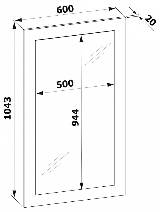 Размеры, мм: 600x20x1043
