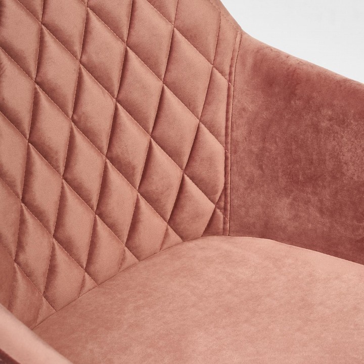 Стул Bremo (mod. 708) на комбинированном каркасе из сочетания многослойной фанеры толщиной 10 мм (в сидении) и металлического основания (в спинке). Наполнение — комбинация пенополиуретанов различной плотности. Обивочный материал – велюр, с мягкой бархатистой текстурой. Ромбовидная отстрочка внутренней части спинки. Ножки из металла с порошковым покрытием и пластиковыми подпятниками.