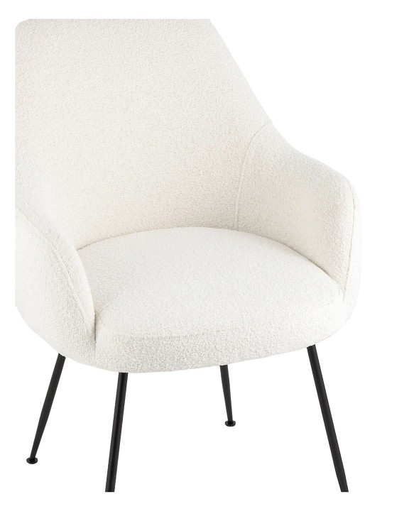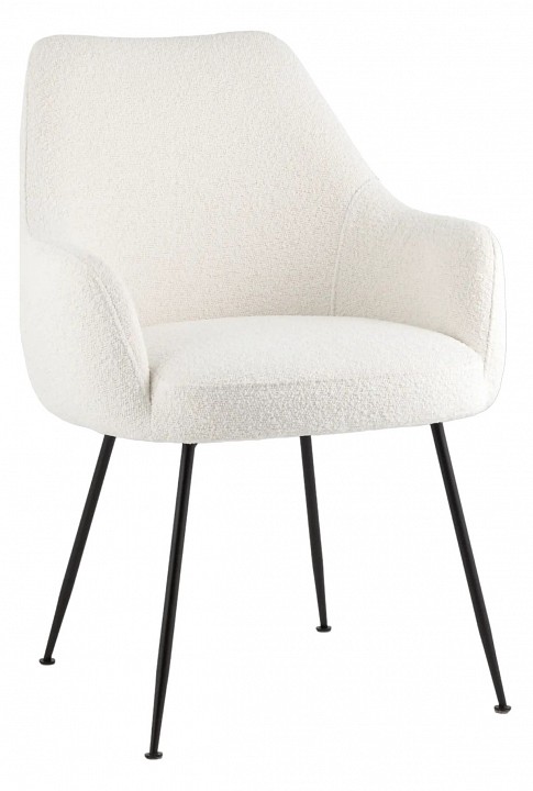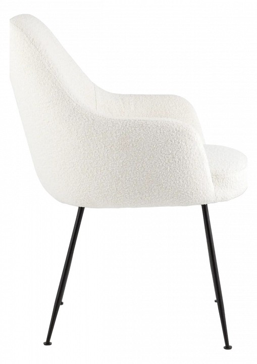 Изящный стул с комфортным сиденьем и спинкой. Основание и ножки черного матового цвета изготовлены из прочного металла. Обивка выполнена из прочной ткани с мягким ворсом в стиле букле, необычная фактура и мягкость добавляют стулу больше уюта. Широкая эргономичная спинка и цельные подлокотники обеспечивают максимальный комфорт в процессе работы или отдыха. Прочный каркас выдерживает до нагрузку до 150 кг. Подпятники в основании предотвращают скольжение и защищают напольные покрытия от царапин. Современный дизайн, который сочетается с любым интерьером.