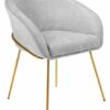 Полукресло Martin имеет широкую изогнутую спинку и мягкое сиденье, которые обеспечивают максимальный уровень комфорта. Ножки выполнены из полированной нержавеющей стали, они не подвержены коррозии и при правильном уходе сохранят свой первоначальный вид 50 лет. Все видимые сварочные швы на ножках тщательно отполированы. Напыление нитрид титана, обеспечивает ножкам натуральный цвет золота. Обивка из шенилла обеспечивает невероятную мягкость и красивый глубокий цвет, износостойкость 100 000 циклов.