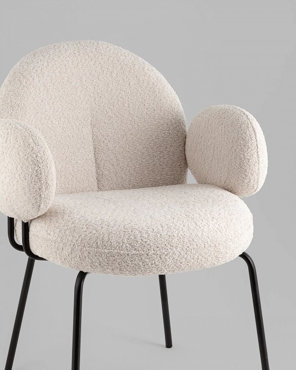 Комфортное мини кресло с широкой закругленной спинкой. Обивка выполнена из мягкой и легкой ткани букле. Красивый и очень мягкий материал, который оставляет ощущение теплоты и уюта. Прочная конструкция выдерживает нагрузки до 150 кг. Полукруглая спинка и широкое сиденье обеспечат удобство при посадке. Лаконичный дизайн кресла дополнит любой интерьер и будет прекрасно смотреться в комплекте с обеденным столом.