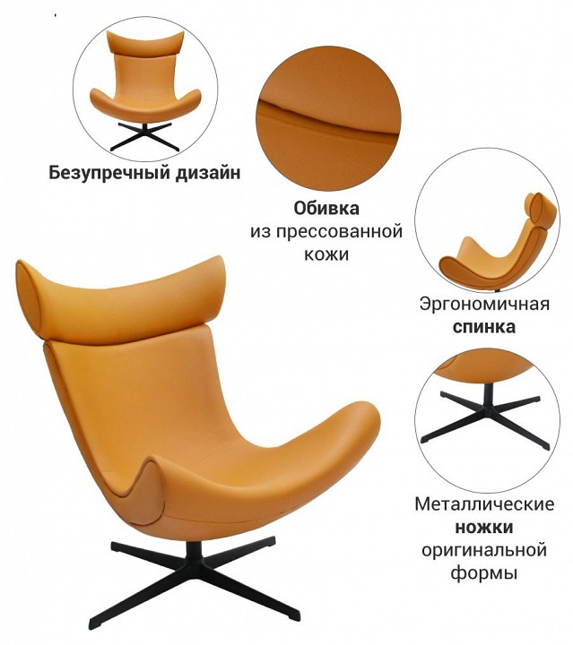 Стильный дизайн с легкими нотками футуристичности и поражающая воображение эргономика, которая позволит вам по-настоящему расслабиться в любой ситуации, все это – кресло Imola: смелое, яркое решение для дома и офиса, способное преобразить даже самый простой и сдержанный интерьер, превратив его в современное пространство «с изюминкой». Высокая изогнутая спинка и приподнятое вверх сиденье словно приглашают вас присесть и самостоятельно оценить непревзойденный комфорт кресла Imola. Чаша кресла обита прессованной кожей и установлена на устойчивой «четырехпалой ножке». Подарите себе незабываемое ощущение легкости и релаксации, как будто законы гравитации над вами больше не властны, вместе с креслом Imola!