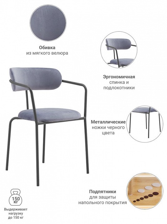 Кресла Ant будут отлично смотреться не только в гостиной, но и станут интересным решением для вашей спальни. Подойдут для кухни, а также для кафе и ресторанов с шикарным дизайном. Цвет обивки нейтрален, поэтому подойдет в качестве дополнения к любому интерьеру. Мягкая, приятная обивка из велюра на сиденье и спинке стула делает его еще более комфортным. Металлическое основание прочное и долговечное, оно способно выдержать вес до 150 кг.