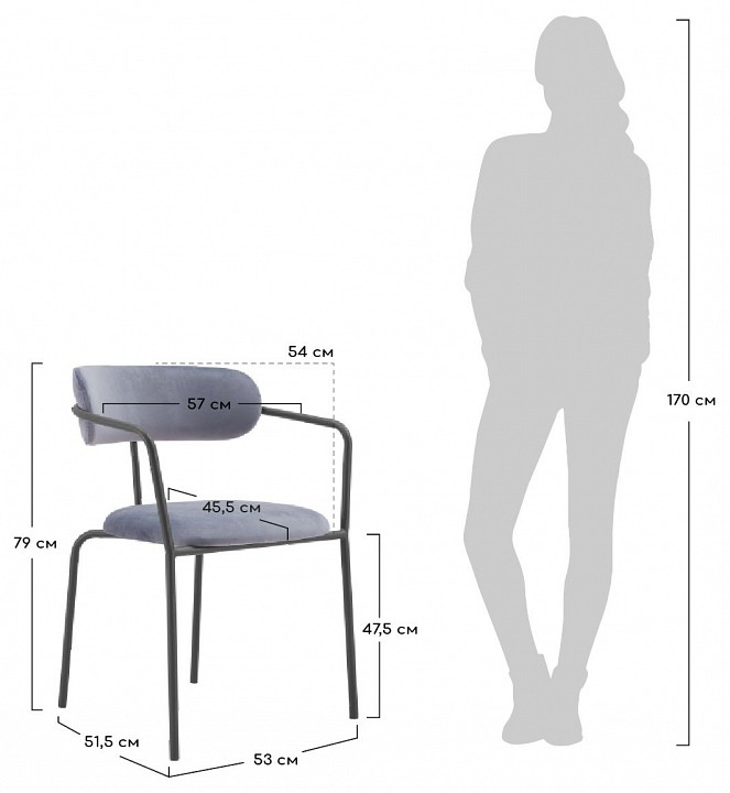 Дополнительные параметры: глубина сиденья — 455 мм, расстояние между подлокотниками — 570 мм, труба металлическая — ?19 мм, плотность пенополиуретана — 20кг/м? на спинке, 25 кг/м? в сиденье