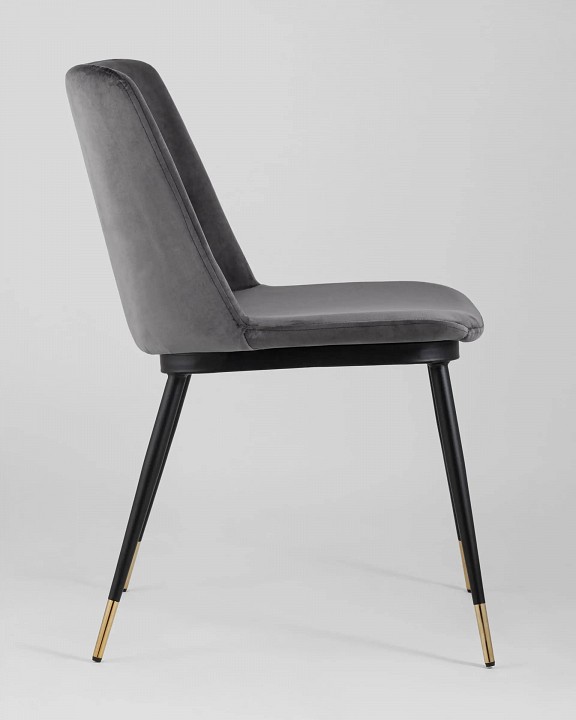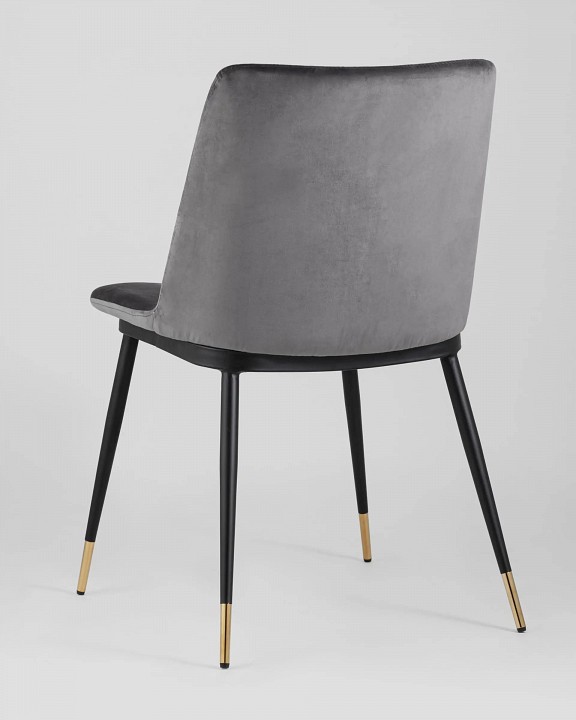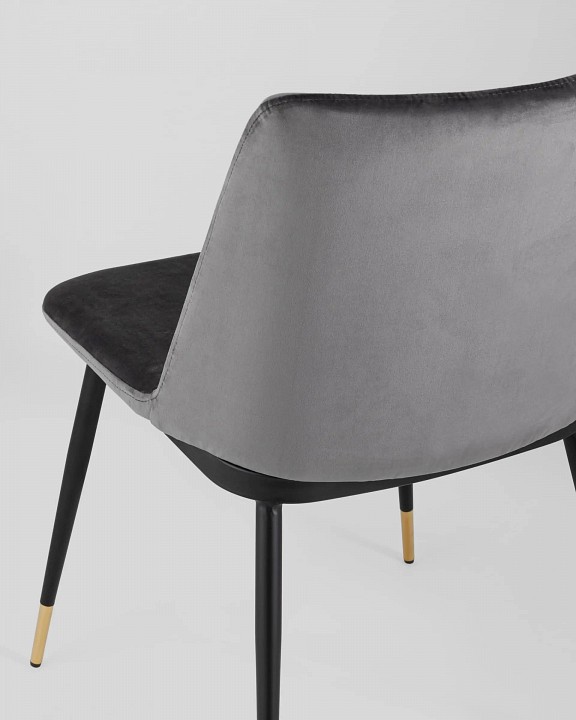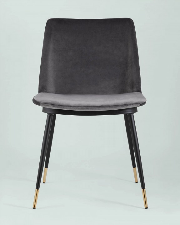 Стильный обеденный стул с обивкой из велюра. Надежная опора достигается благодаря металлическому каркасу и удобным устойчивым ножкам, красиво украшенным золотом.