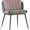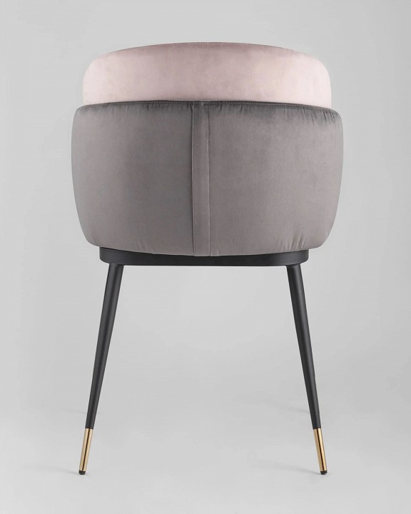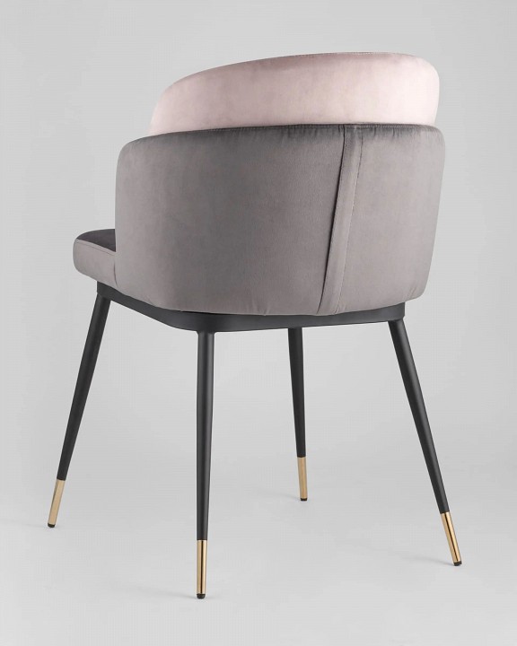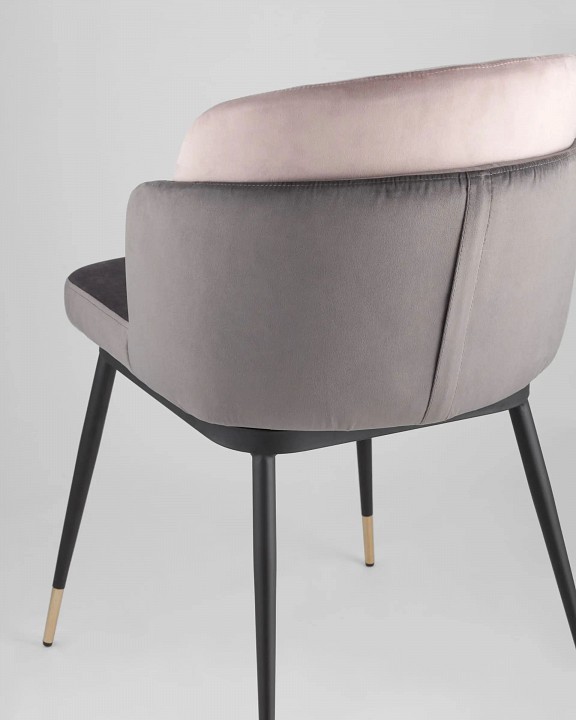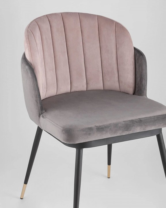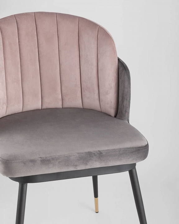 Мягкий двухцветный стул с обивкой из вельвета. Надежная опора достигается благодаря металлическому каркасу и удобным устойчивым ножкам. Спинка состоит из двух элементов, внутренняя часть с красивой вертикальной строчкой.