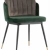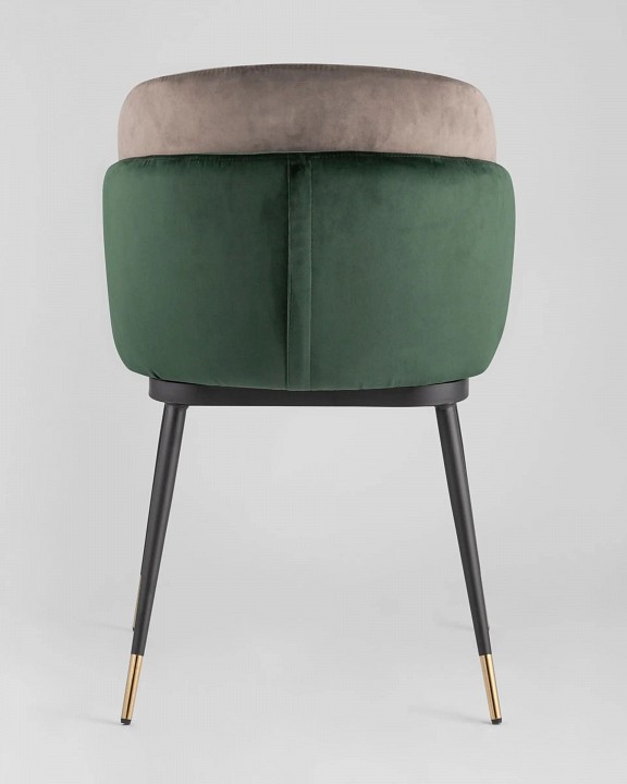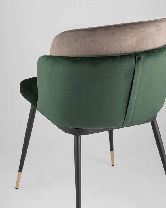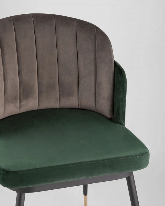 Мягкий двухцветный стул с обивкой из вельвета. Надежная опора достигается благодаря металлическому каркасу и удобным устойчивым ножкам. Спинка состоит из двух элементов, внутренняя часть с красивой вертикальной строчкой.