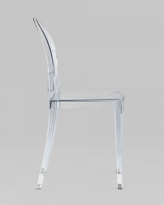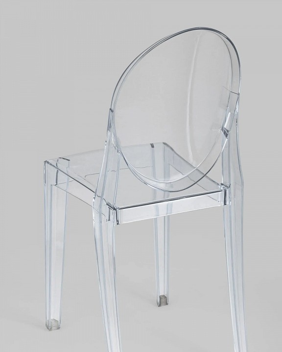 Дизайнерский стул изготовлен из поликарбоната. Экологически чистый и долговечный материал обладает хорошей прочностью, термостойкостью и малым весом. Стул переживет не одно десятилетие, сохранив свои качества и красоту. Высокая спинка и просторное сиденье обеспечивают комфортную посадку. Современное дизайнерское решение в виде отсутствия цвета позволяет вписать стул в любой интерьер, не перегружая пространство. Несмотря на хрупкий внешний вид, стул выдерживает нагрузку в 150 кг.
