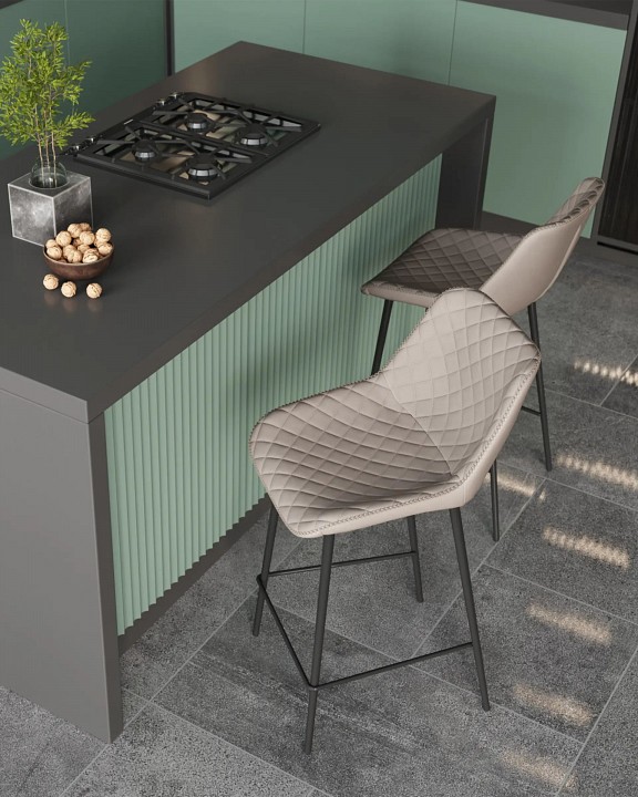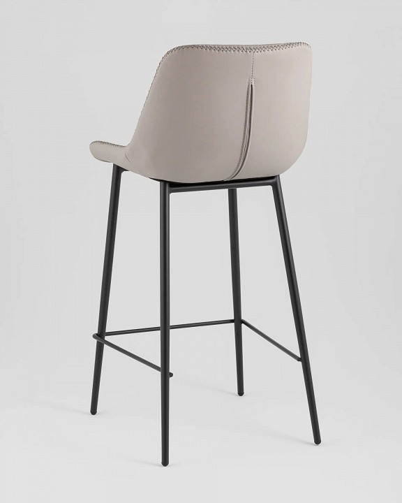 Современная модель барного стула в обивке из экокожи дополнит любой интерьер дома. Обивка из экокожи практичный вариант для мебели. Материал устойчив к влаге, к перепадам температуры, поверхность можно легко и быстро очистить от загрязнений. Приятная фактура и гипоаллерегенность обивки позволяют разместить барный стул в кафе и ресторанах или в других общественных заведениях. Комфортная посадка обеспечивается за счет широкого сиденья и плавной спинки. Эргономичные формы барного стула позволяют длительное время поддерживать положение осанки в комфортном положении. Декоративная стяжка подчеркивает стильный дизайн стула и добавляет мягкость сиденью. Прочный металлический каркас выдерживает нагрузку до 120 кг. Четыре металлических ножки оснащены подножкой для удобного положения ног.
