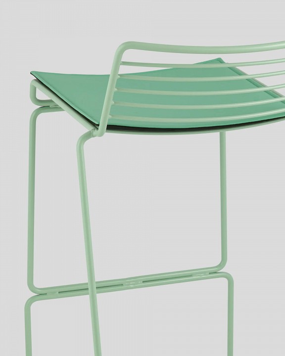 Современная модель барного стула подходит как для интерьера обеденной зоны дома, так и для кафе или ресторана. Спинка и сидение выполнены из металлических прутьев бордового цвета. Подушка изготовлена из экокожи в тон каркасу. Ножки выполнены из металла в тон сидения и имеют подставки, которые предотвращают скольжение по поверхности пола.