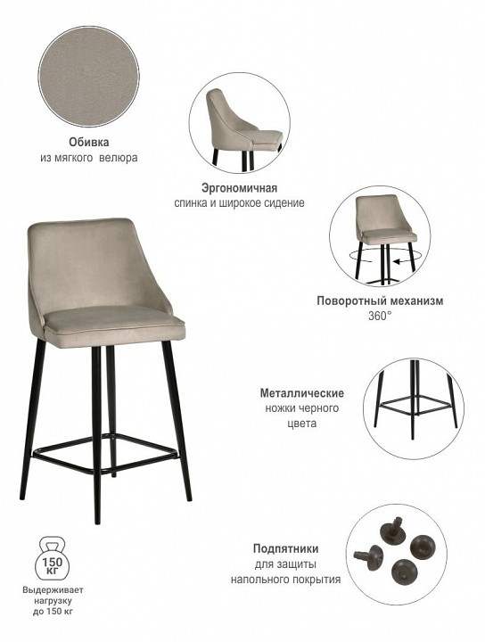 Стул Dave выполнен из приятного на ощупь и износостойкого велюра на устойчивом металлическом каркасе полубарной высоты с поворотным механизмом. Высокая мягкая спинка обеспечит позвоночнику отличную опору. Благодаря своему внешнему виду, он отлично впишется в любой современный интерьер.