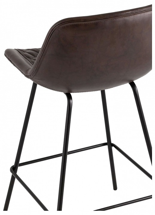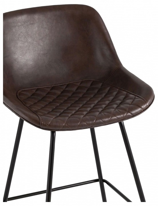 Современная модель барного стула в обивке из экокожи дополнит любой интерьер дома. Обивка из экокожи — практичный вариант для мебели. Материал устойчив к влаге, к перепадам температуры, поверхность можно легко и быстро очистить от загрязнений. Приятная фактура и гипоаллерегенность обивки позволяют разместить барный стул в кафе и ресторанах или в других общественных заведениях. Комфортная посадка обеспечивается за счет широкого сиденья и плавной спинки. Декоративная стяжка в виде ромбов подчеркивает стильный дизайн стула и добавляет мягкость сиденью. Прочный металлический каркас выдерживает нагрузку до 120 кг. Ножки оснащены полукруглыми подпятниками для защиты напольного покрытия и подножкой для удобного положения ног.