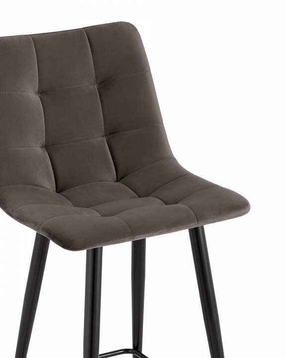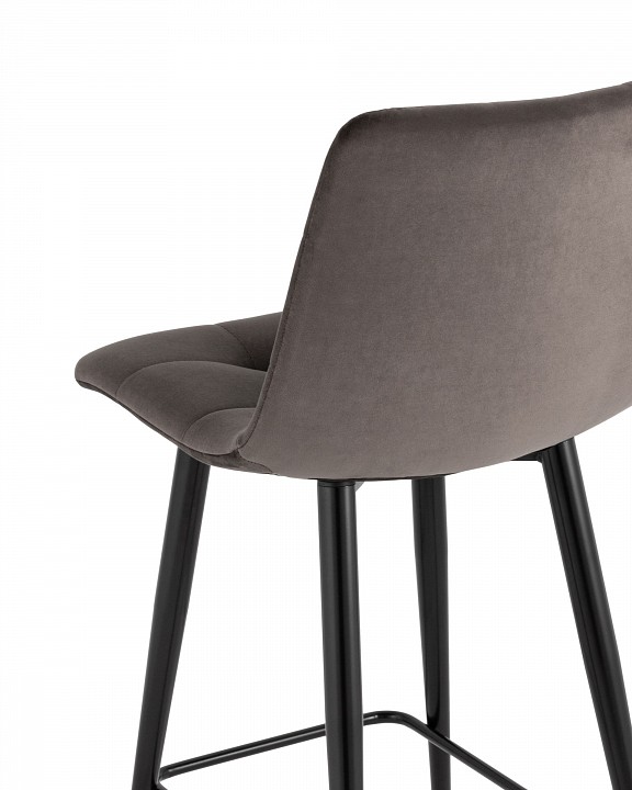 Лаконичный барный стул с обивкой из велюра без подлокотников. Плавная форма сиденья и спинки обеспечивают комфортную посадку. Красивая строчка на внутренней стороне велюровой обивки, эргономичная спинка, аккуратное исполнение и качественные материалы. Ножки выполнены из металла.