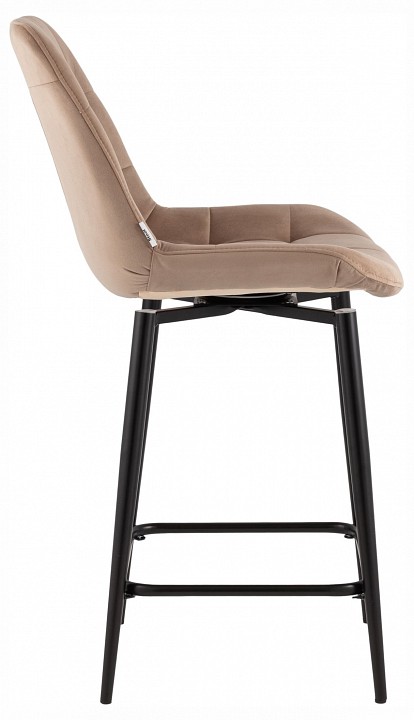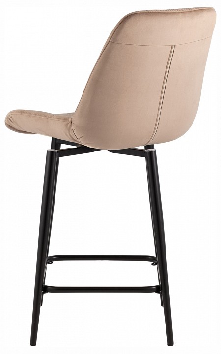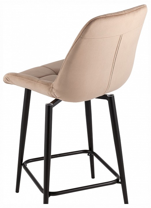Модель выполнена с использованием мягкого велюра, который создает элегантный и современный образ. Металлический каркас обеспечивает прочность и долговечность, гармонируя с лаконичным дизайном. Отсутствие подлокотников делает стул визуально легким, а мягкие спинка и сиденье повышают уровень комфорта. Высота стула подходит для полубарных стоек, делая его универсальным для различных пространств. Удобная подставка для ног обеспечивает комфортную посадку даже при длительном использовании, а поворотный механизм добавляет мобильности и практичности. Модель выдерживает нагрузку до 120 кг, гарантируя надежность и устойчивость. Современный стиль стула позволяет использовать его на кухне, в баре, кафе или лаундж-зоне, гармонично вписываясь в разные интерьеры.