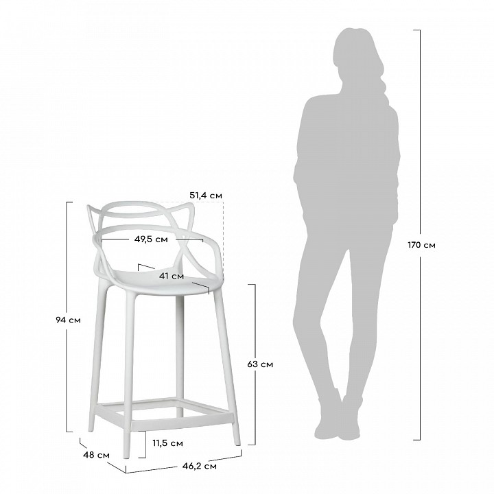 Дополнительные параметры: высота от пола до сиденья — 630 мм, высота от пола до подножки — 115 мм, глубина сиденья — 410 мм, ширина сиденья — 495 мм