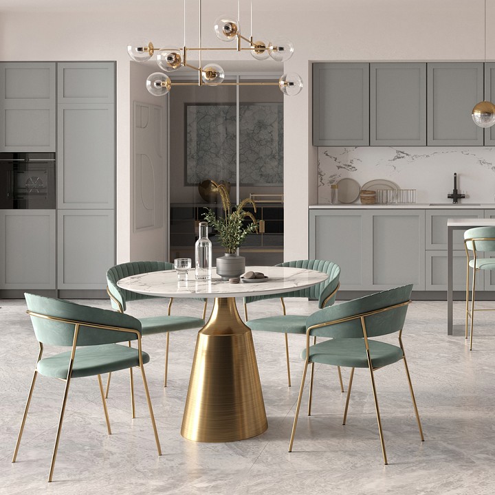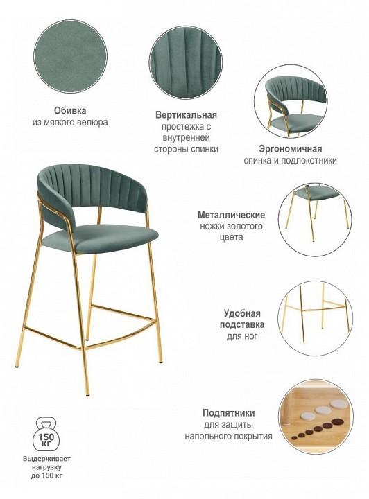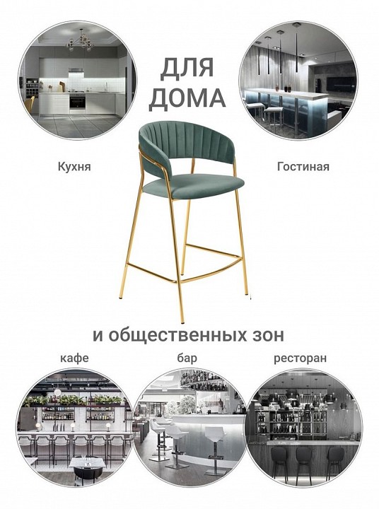 Полубарный стул Turin бирюзовый с золотыми ножками повторяет дизайн моделей стульев Turin и Avatar, что позволяет реализовать различные пространства помещения в едином стилевом решении.