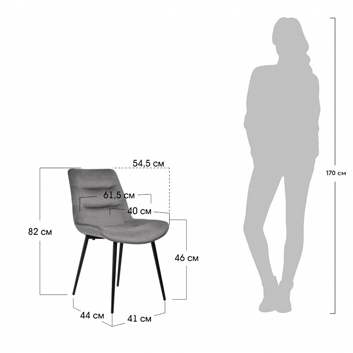 Дополнительные параметры: Ширина сиденья — 615 мм, глубина сиденья — 400 мм. Расстояние между передними ножками — 410 мм, расстояние между передними и задними ножками — 440 мм.