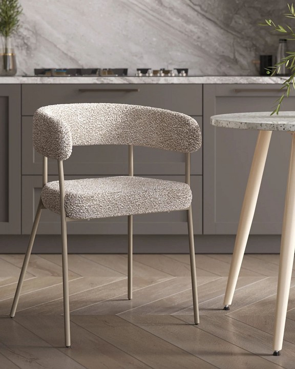 Обеденный стул cтильный и удобный, выполнен в сером цвете, прекрасно дополнит вашу обеденную зону или кухню, создавая атмосферу комфорта и уюта. Стул для кухни изготовлен из высококачественной ткани букле, которая отличается прочностью, долговечностью и приятной на ощупь текстурой. Металлические ножки обеспечивают надежную поддержку и устойчивость, выдерживая нагрузку до 120 кг. Лаконичный и элегантный дизайн прекрасно впишется в любой современный интерьер. Серый цвет универсален и легко сочетается с различными оттенками и текстурами. Благодаря удобной спинке и мягкой обивке, стул кресло обеспечивает максимальный комфорт во время приема пищи или общения с близкими. Подлокотники добавляют удобства, а глубина сиденья и ширина гарантируют достаточное пространство для комфортного сидения.мУникальный дизайнерский стул идеально подойдет для дома: кухня, корридор, гостинная, для балкона, так и в коммерческих помещениях: бар, кафе, лаунж зона.