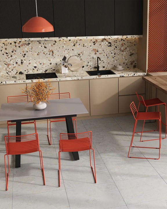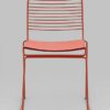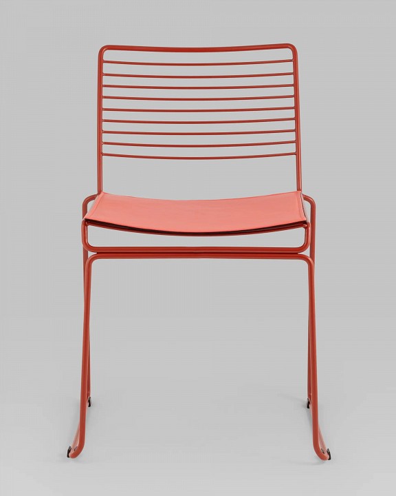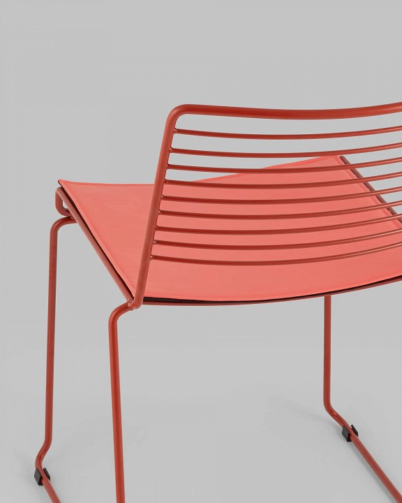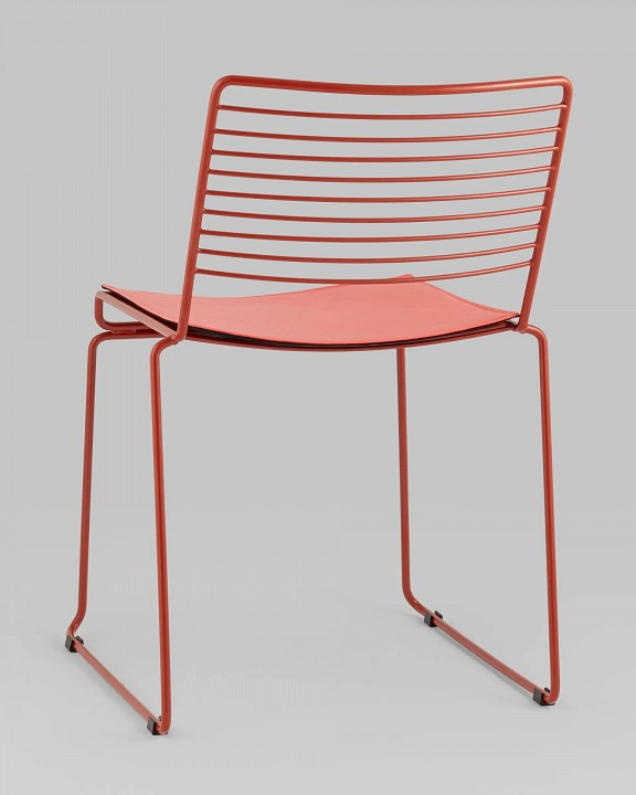 Современная модель стула подходит как для интерьера обеденной зоны дома, так и для кафе или ресторана. Спинка и сидение выполнены из металлических прутьев. Подушка изготовлена из экокожи в тон каркасу. Ножки выполнены из металла в тон сидения и имеют подставки, которые предотвращают скольжение по поверхности пола.Обратите внимание, данный стул можно стопировать, что помогает экономить место при хранении.