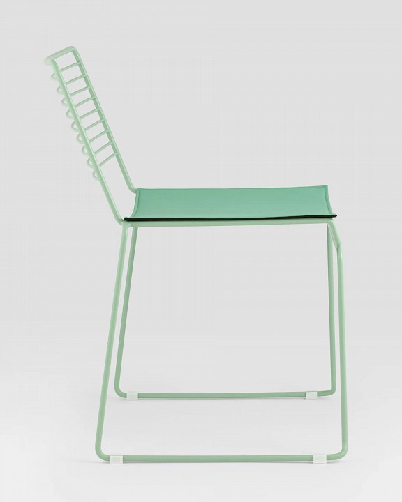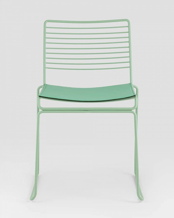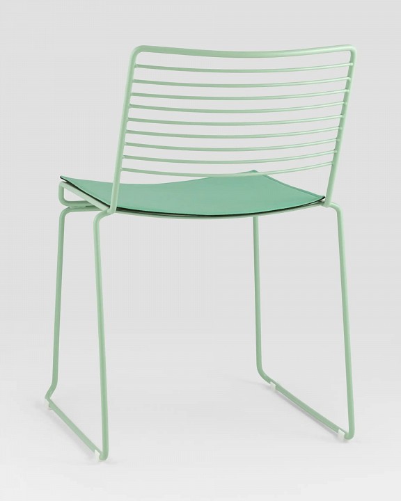 Современная модель стула подходит как для интерьера обеденной зоны дома, так и для кафе или ресторана. Спинка и сидение выполнены из металлических прутьев. Подушка изготовлена из экокожи в тон каркасу. Ножки выполнены из металла в тон сидения и имеют подставки, которые предотвращают скольжение по поверхности пола.Обратите внимание, данный стул можно стопировать, что помогает экономить место при хранении.