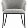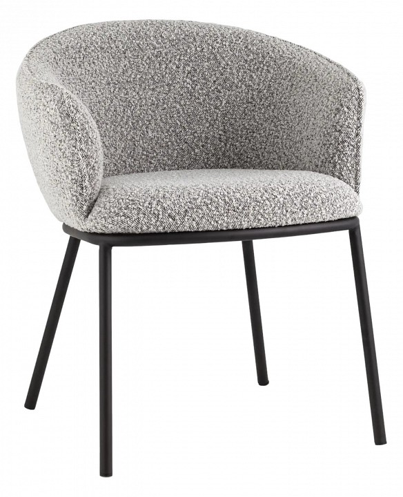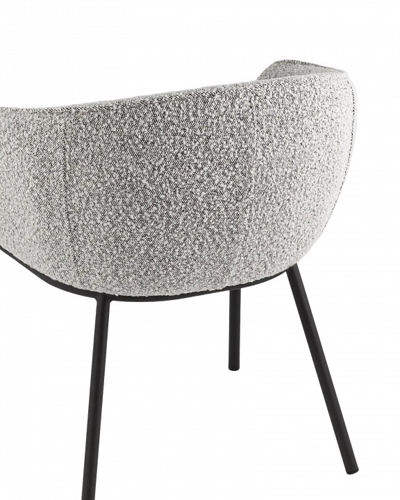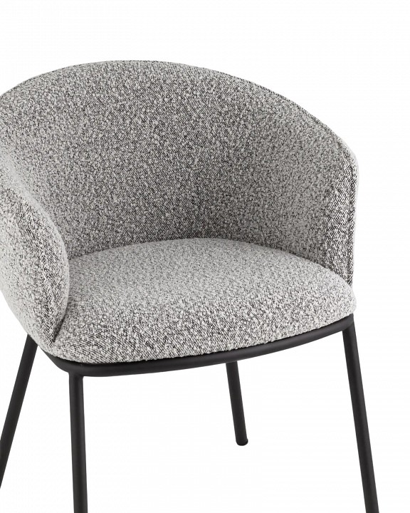 Обеденный стул Дон с мягкой полукруглой спинкой и сидением из ткани букле отлично впишется в обеденную зону любой современной кухни. Каркас металлический, ножки выполнены в черном цвете. Дополнительно предусмотрены специальные подпятники, которые предотвращают скольжение и повреждение напольного покрытия. Прекрасно сочетается с обеденным или письменным столом.