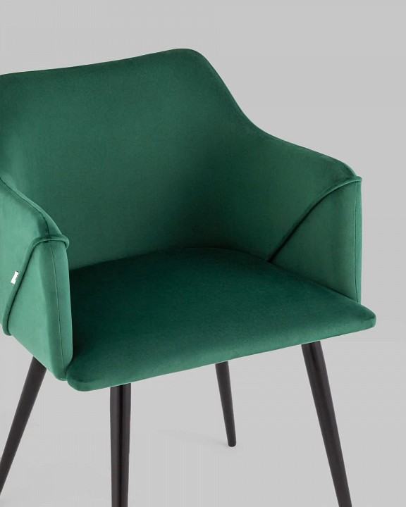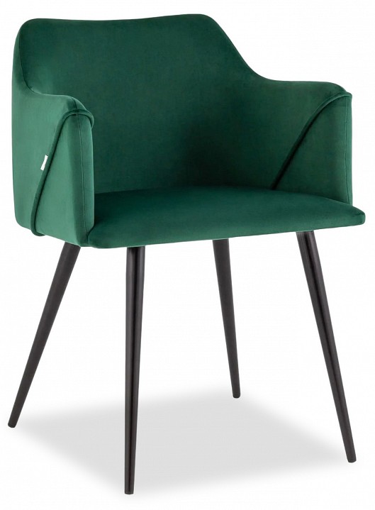 Комфортный и стильный стул Джоэл с подлокотниками. Особенности:, Мягкая обивка из велюра., Удобная посадка обеспечивается за счет широкой спинки, которая плавно переходит в подлокотники, создавая эргономичную форму., Металлические ножки выполнены в черном цвете., Выдерживает нагрузку до 100 кг. Стул Джоэл дополнит любой интерьер дома, кафе или лаундж зоны.