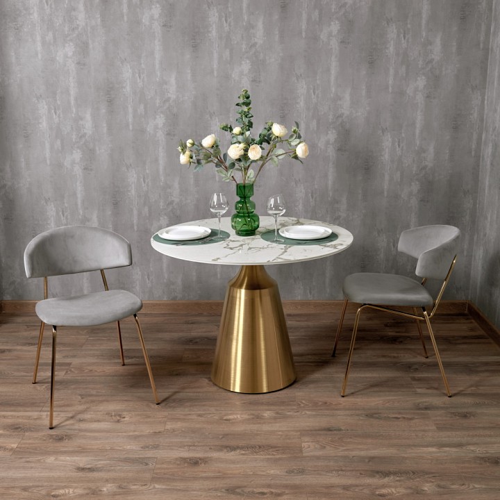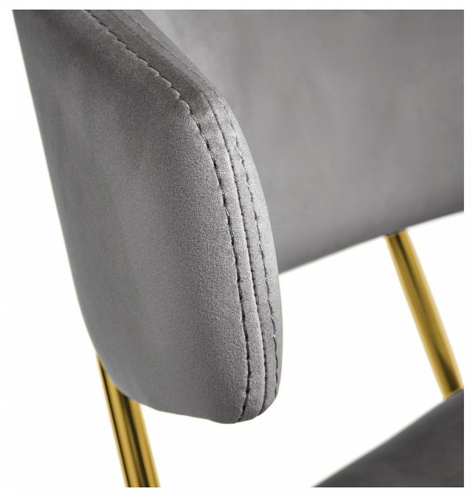 Стул обладает необычным и стильным дизайном, который привлечет внимание всех гостей вашего дома. Главная его особенность — необычный каркас, выполненный в виде двух металлических стержней, к которым прикреплены мягкие спинка и сиденье, обитые микровелюром Manhattan. Ткань полностью воплощает в себе современные технологии производства, что отличает ее от других трикотажных велюров. Равномерный ворс лицевой поверхности, благодаря переплетению French terry, подчеркнёт достоинства стула. Такой выбор обивки делает стул комфортным и уютным. Ножки стула выполнены из полированной нержавеющей стали с напылением нитрида титана, что создает эффект натурального золота. Это придает стулу элегантный и роскошный вид. Дизайн данной модели идеально подойдет для современных интерьеров, выполненных в стиле модерн или минимализм. За счет своей лаконичности и комфорта в посадке этот стул станет прекрасным дополнением для гостиной, столовой или спальни.